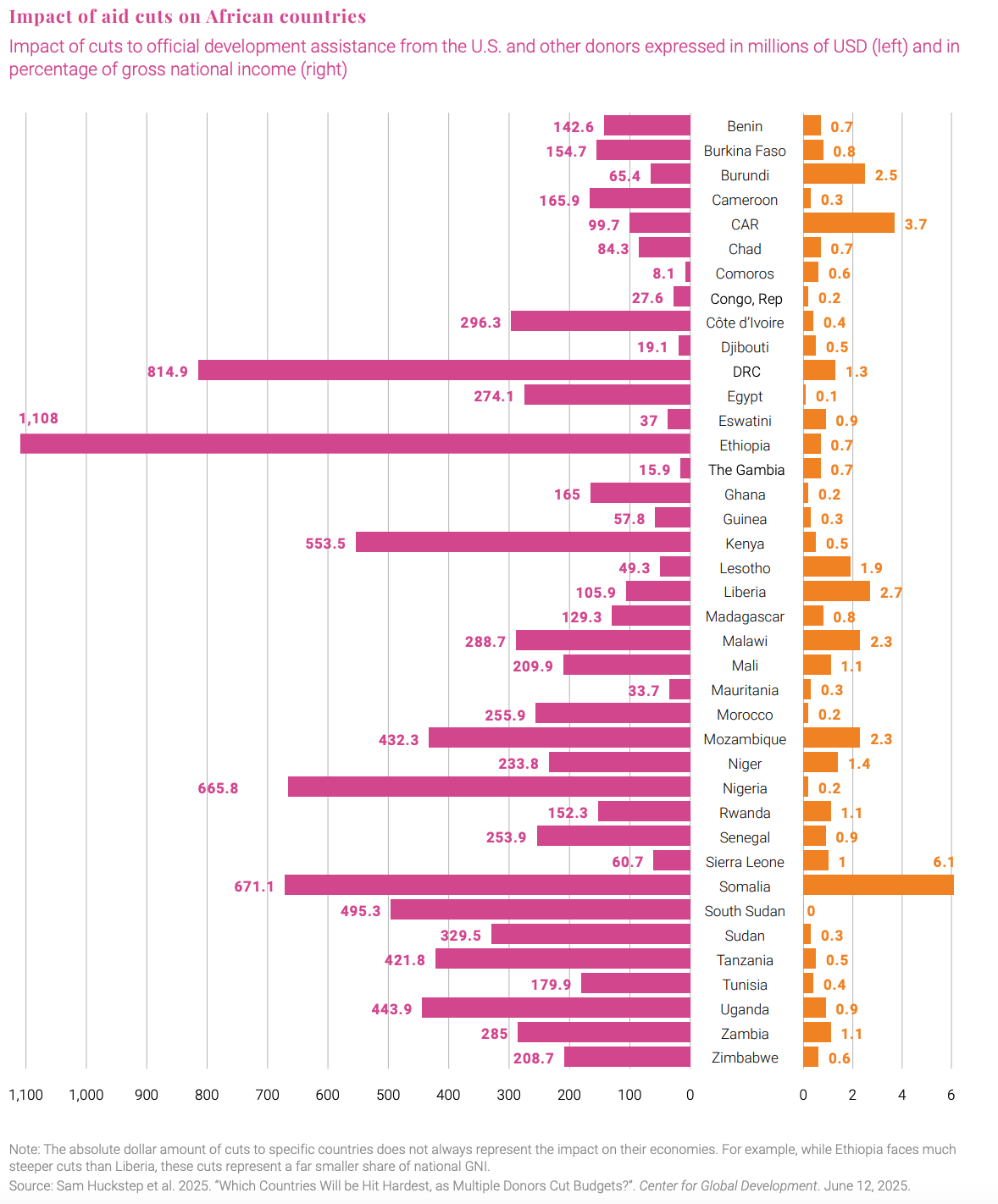 This week’s graphic sits in the essay Leveraging Africa’s Natural Resource Wealth to Bridge the Financing Gap in Brookings Foresight Africa 2026. It makes a simple but powerful point: as global aid retreats, the impact on African countries is uneven and often most severe where aid makes up a meaningful share of national income, not where the headline dollar cuts are largest.