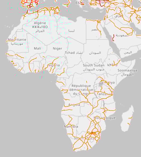 Africa has just 66,000 km of rail, less than half of China’s, despite being more than 3x larger by land area. Source: Bloomberg and Visual Capitalist.