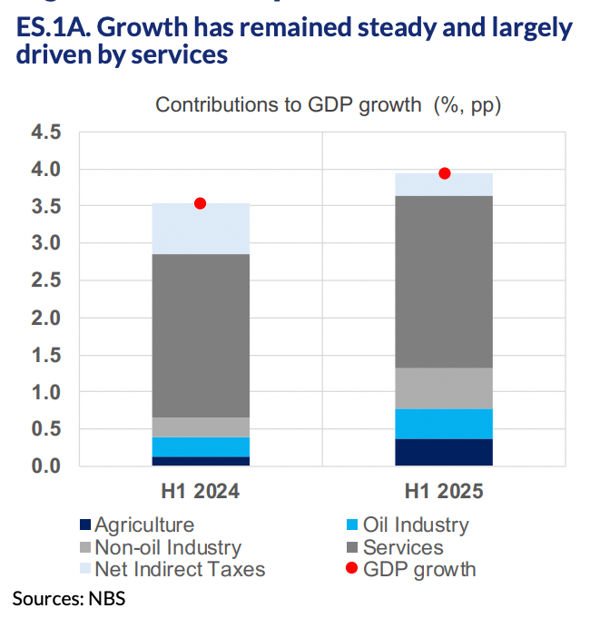 Reforms like fuel subsidy removal, tax improvements and exchange rate unification helped GDP rise 3.9% in early 2025 (up from 3.5% last year). Rebasing the economy this year revealed Nigeria’s GDP is 36.8% larger than previously estimated — and far less oil-dependent, with crude now just 3.9% of GDP.