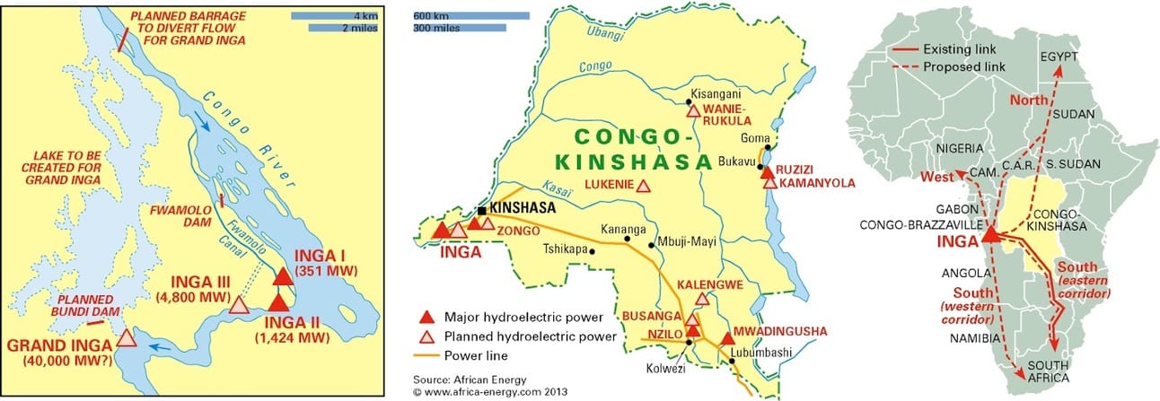 South Africa and the DRC last week pledged to revive Congo’s giant Inga III hydroelectric project. The renewed efforts represent SA’s attempts to solve its own crippling domestic power crisis. The $14bn project, harnessing the power of the Congo River, has been repeatedly delayed by red tape and disagreements between Congo and its partners (Fin24). Inga Three, announced in 2013 with World Bank’s financial support, was supposed to deliver 11GW of power, primarily for export to SA and for mines in eastern Congo. However, the World Bank canceled its involvement in 2016 due to what it called “strategic differences.” Congo’s President Felix Tshisekedi said he had held discussions with potential new and old partners, including China and the World Bank, in recent weeks.