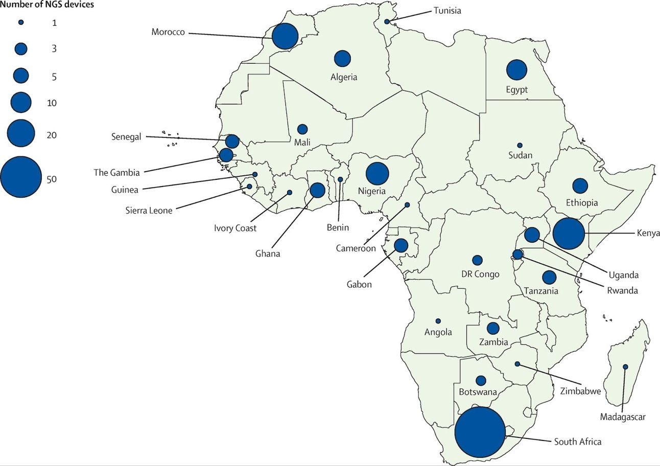 Next-generation sequencing capacity in Africa as of 2021. Source: The Lancet.