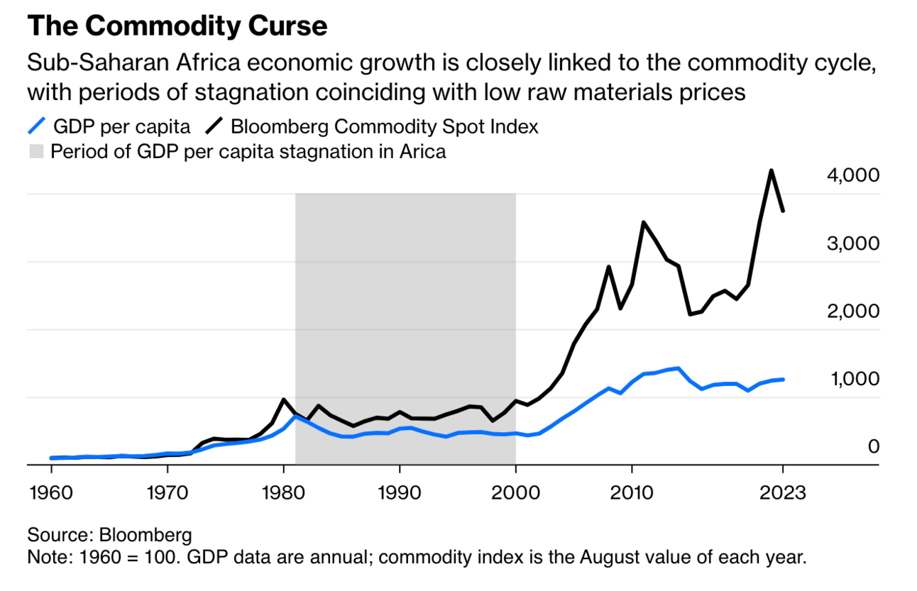 In context: Many African states are blessed with an abundance of natural resources. However, the continent’s reliance on those commodities has proved to be more of a curse than blessing. Low prices, mismanagement, corruption, wars and the legacy of colonialism hampered Africa’s development throughout much of the 1980s and 1990s — a time since referred to as Africa's lost decades. By 2001, regional GDP per capita in sub-Saharan Africa was lower than it had been in 1981. It became the “hopeless continent” in the eyes of many investors (Bloomberg). Since the turn of the century, China’s bumper economic growth has improved many African states' GDP. Now the world’s transition to the green economy has spurred another international race for African commodities like cobalt, coltan, tungsten, nickel, and copper. The new scramble for commodities begs the question — will Africa’s political leaders change their ways or fall back to old habits?