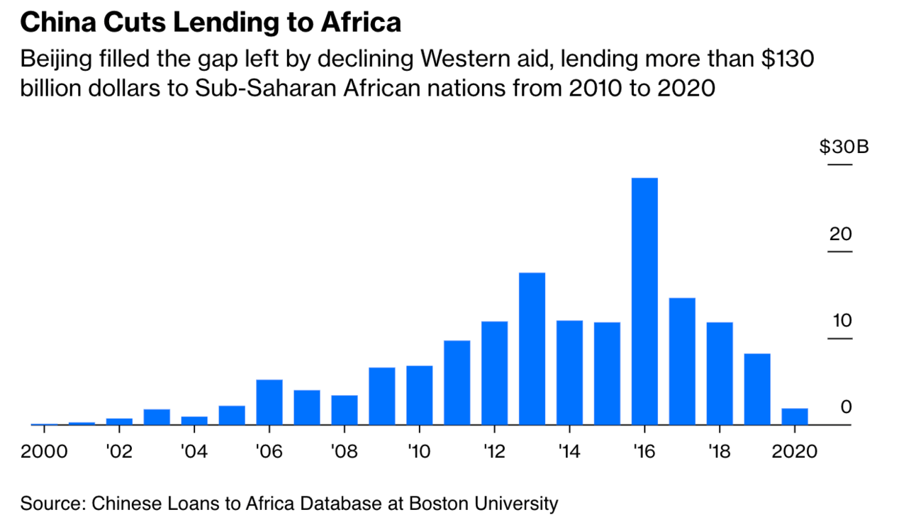 China’s lending to the continent has hit the lowest point in two decades — this on the 10th anniversary of the launch of its global infrastructure project, the Belt and Road Initiative (BRI) (Voice of America). Researchers from Boston University Global China Initiative said the pandemic, domestic economic woes, policy changes, and concerns about African debt were among the reasons lending in 2021 and 2022 slumped. In 2021, Beijing loaned $1.22 billion to Africa, and last year only nine loans amounting to $994.48 million were signed.