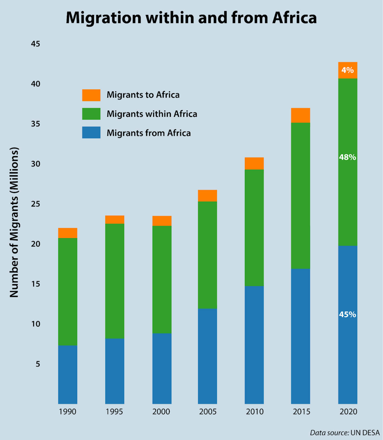 On the topic of migration, Pope Francis warned against a ‘paralysis of fear’ as European nations shy away from responsibility for taking care of people arriving by sea (Al Jazeera). Importantly, intra-African migration still exceeds migration from the continent — African states are left with the bulk of the responsibility in hosting displaced people.